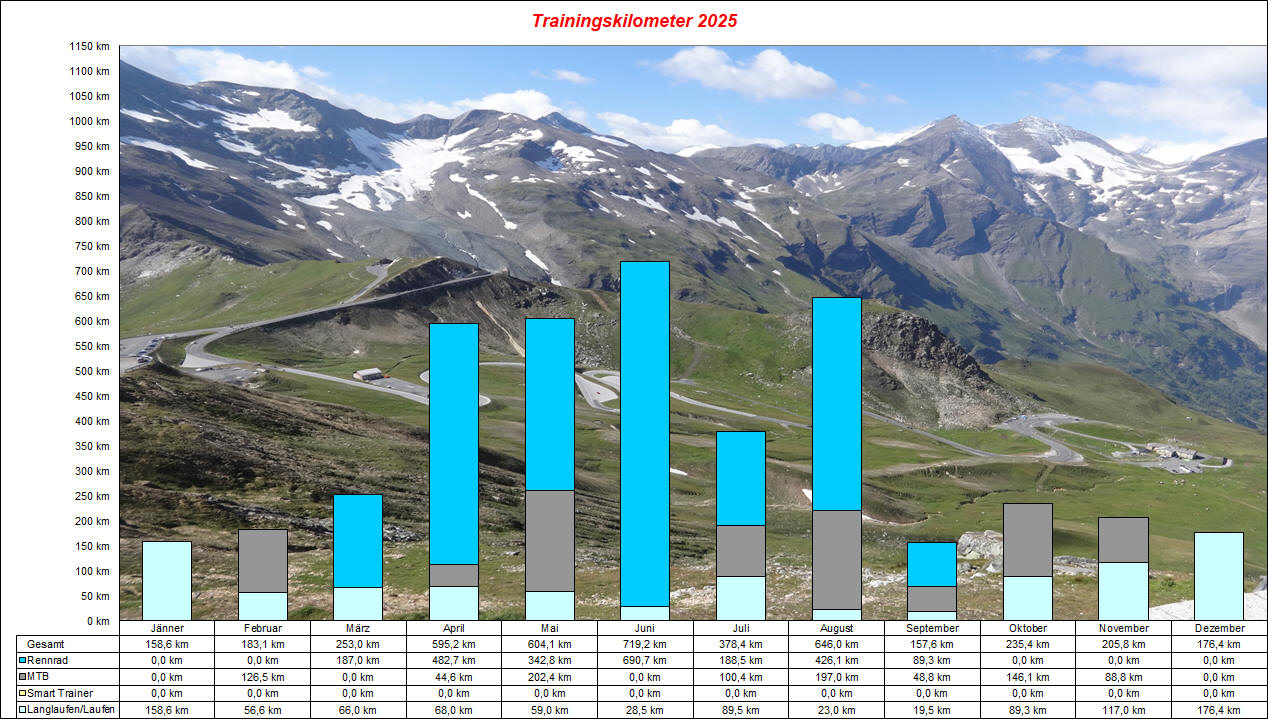 | 2025 | 95:19 Std | 951 km | 9729hm | 46:44 Std | 955 km | 17000hm | 86:36 Std | 2407 km | 31033hm | 228:39 Std | 4313 km | 57762hm | ||