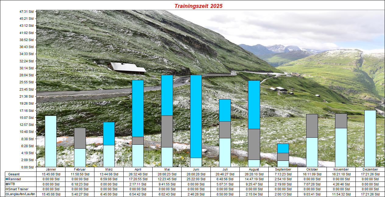 | 2008 | 114:51 Std | 3839 km | 172:21 Std | 4960 km | 56145hm | 287:12 Std | 8799 km | 56145hm | ||||||